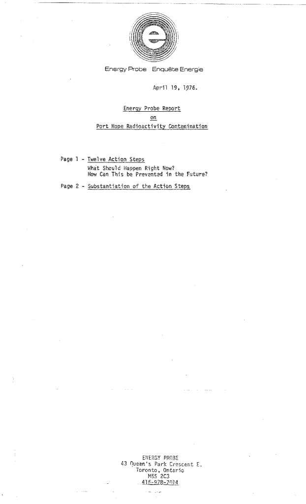 Energy probe report on Port Hope radioactivity contamination