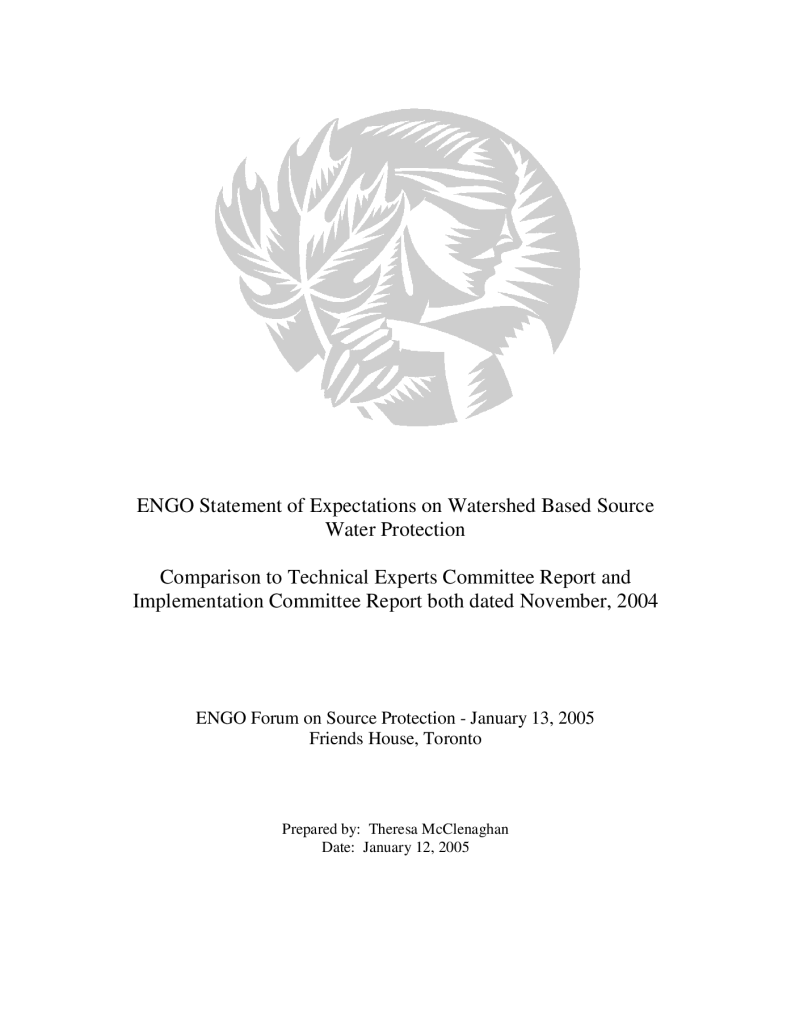 ENGO Statement of Expectations on Watershed Based Source Water Protection – Comparison to Technical Expert and Implementation Committee Reports