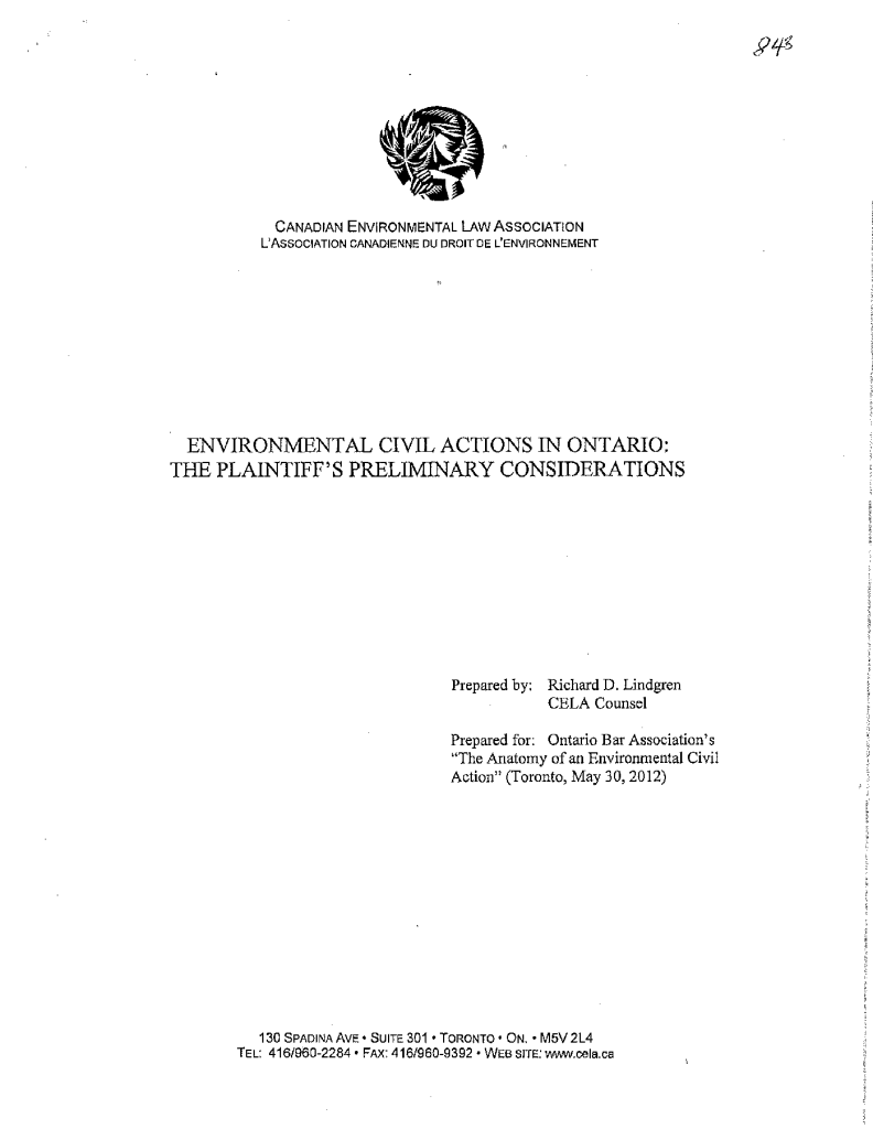 Environmental civil actions in Ontario: the plaintiff’s preliminary considerations