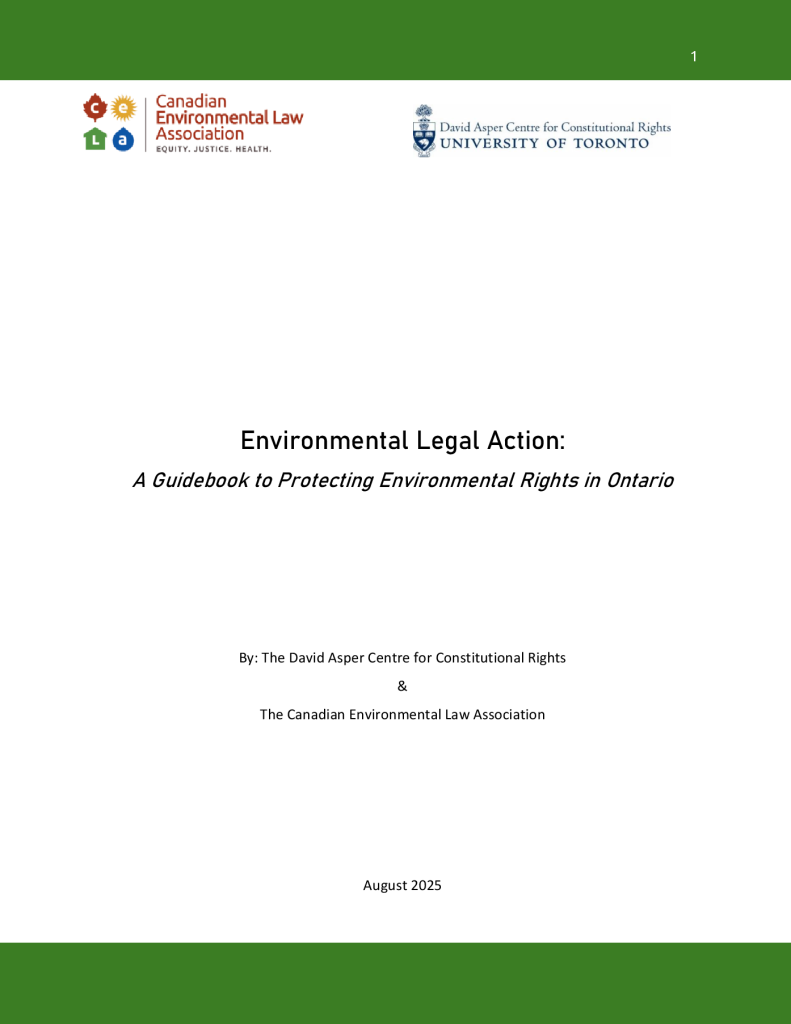 Environmental Legal Action: A Guidebook to Protecting Environmental Rights in Ontario