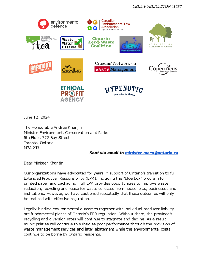Environmental organizations seek improvements to Ontario’s extended producer responsibility and recycling programs