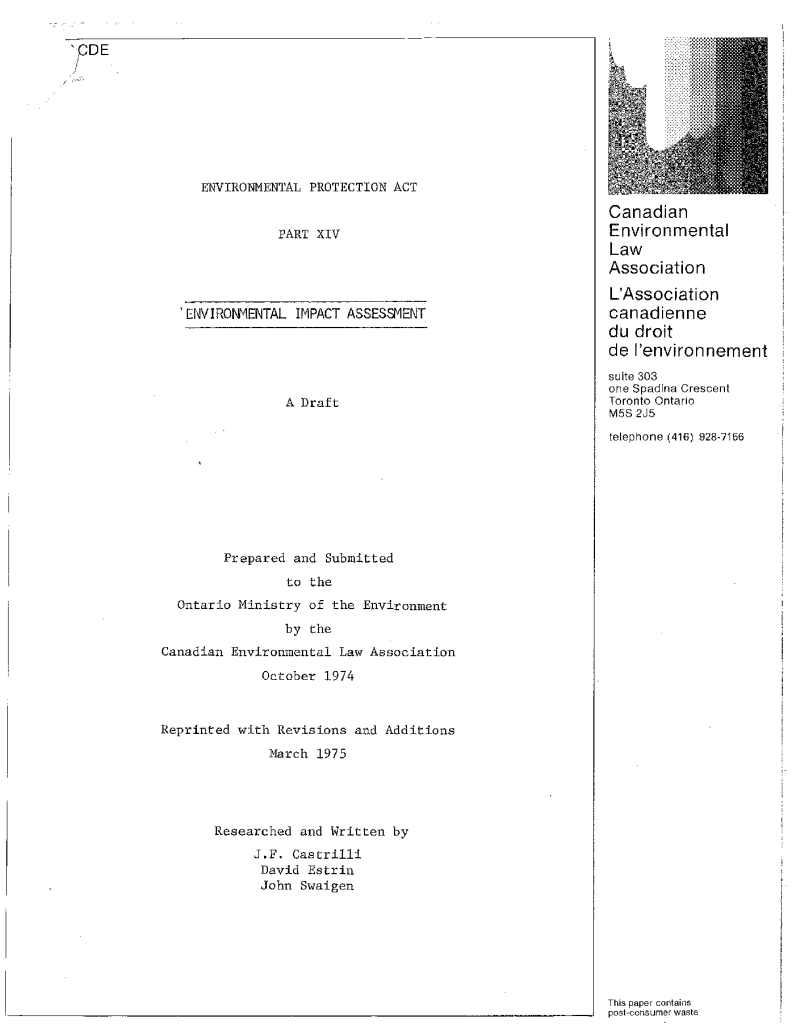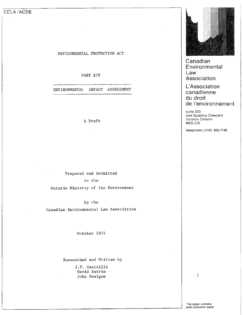 Environmental protection act part XIV : Environmental impact assessment : A draft