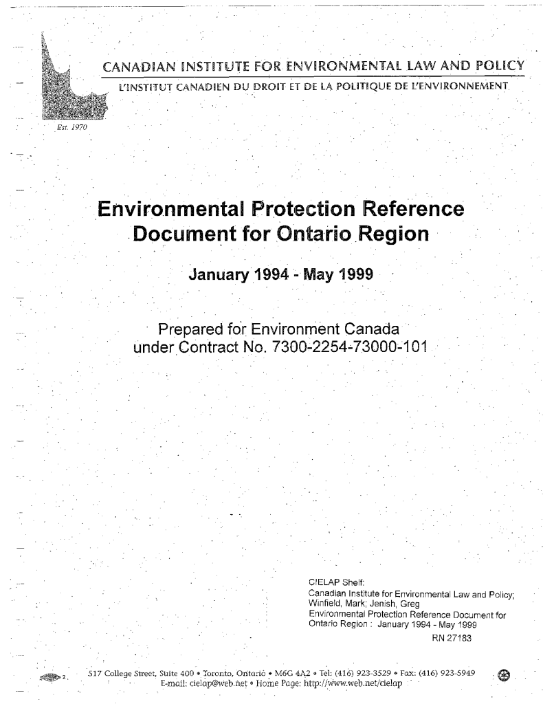 Environmental protection reference document for Ontario region January 1994 – May 1999