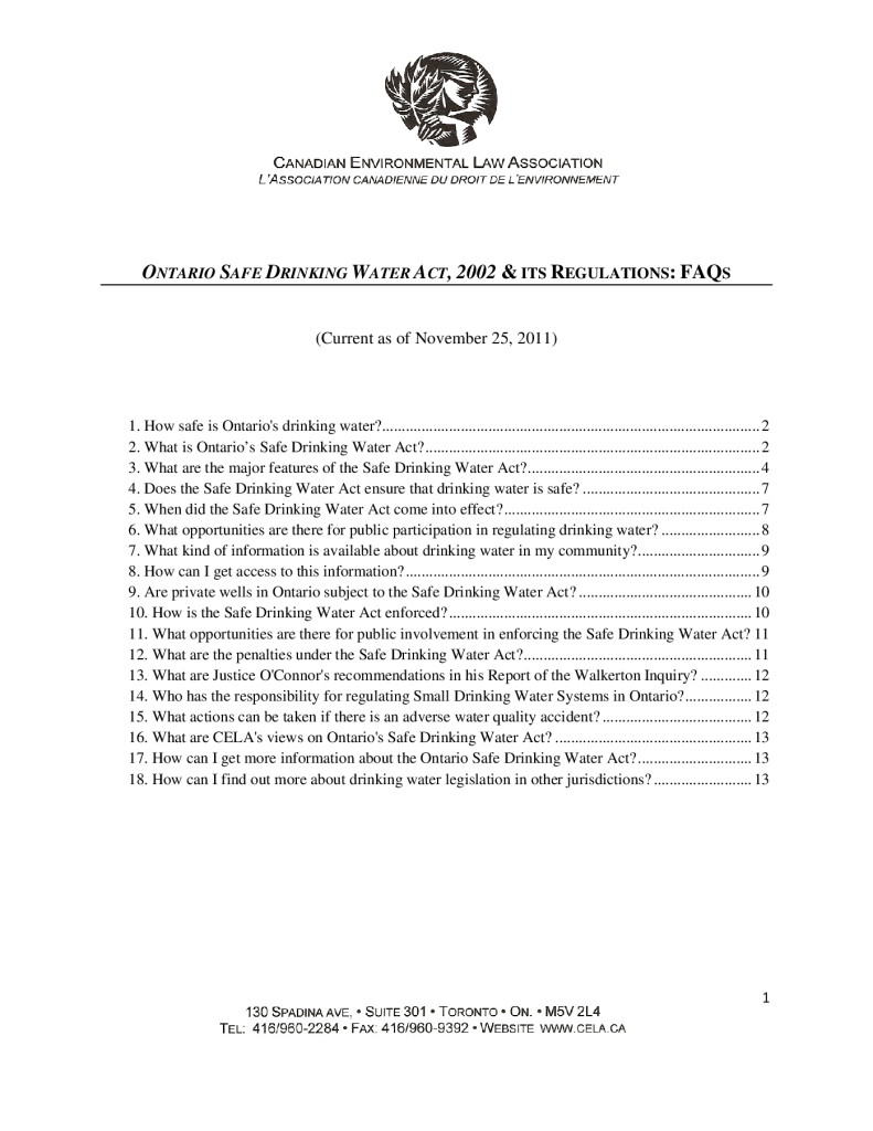 FAQs: Safe Drinking Water Act, 2002, and its Regulations
