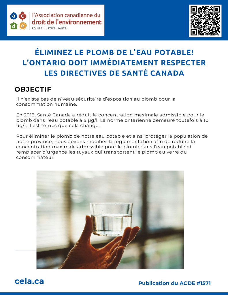 Fiche d’information: Éliminez le plomb de l’eau potable!