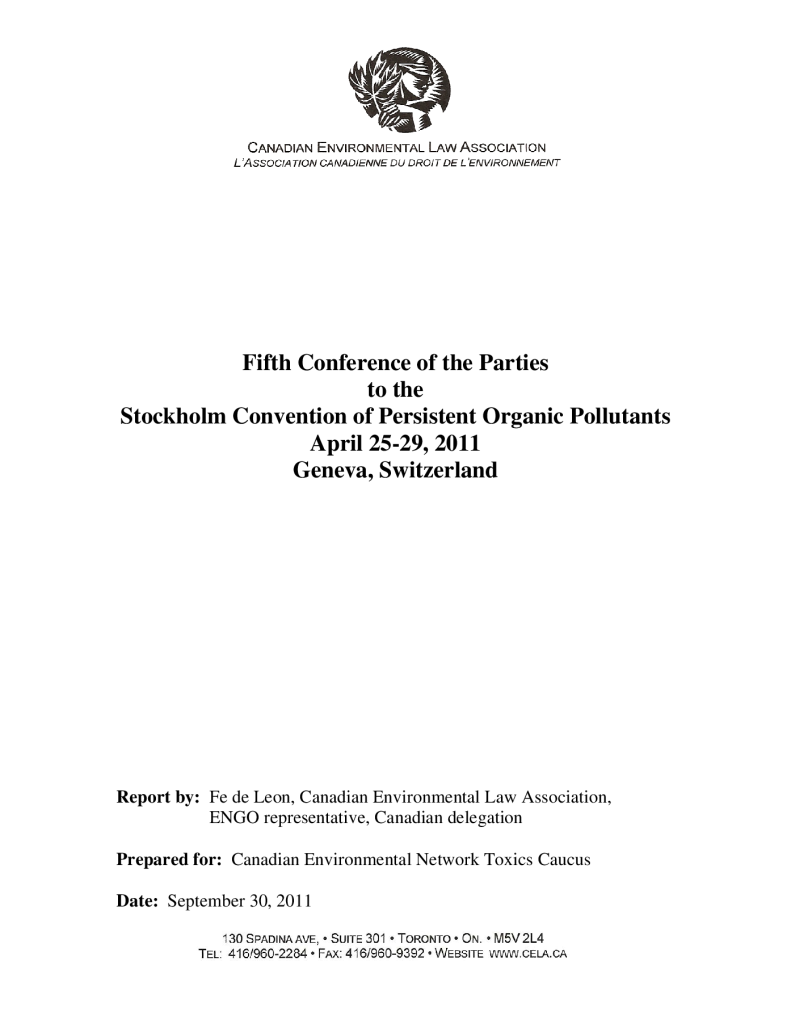 Fifth conference of the parties to the Stockholm Convention of Persistent Organic Pollutants