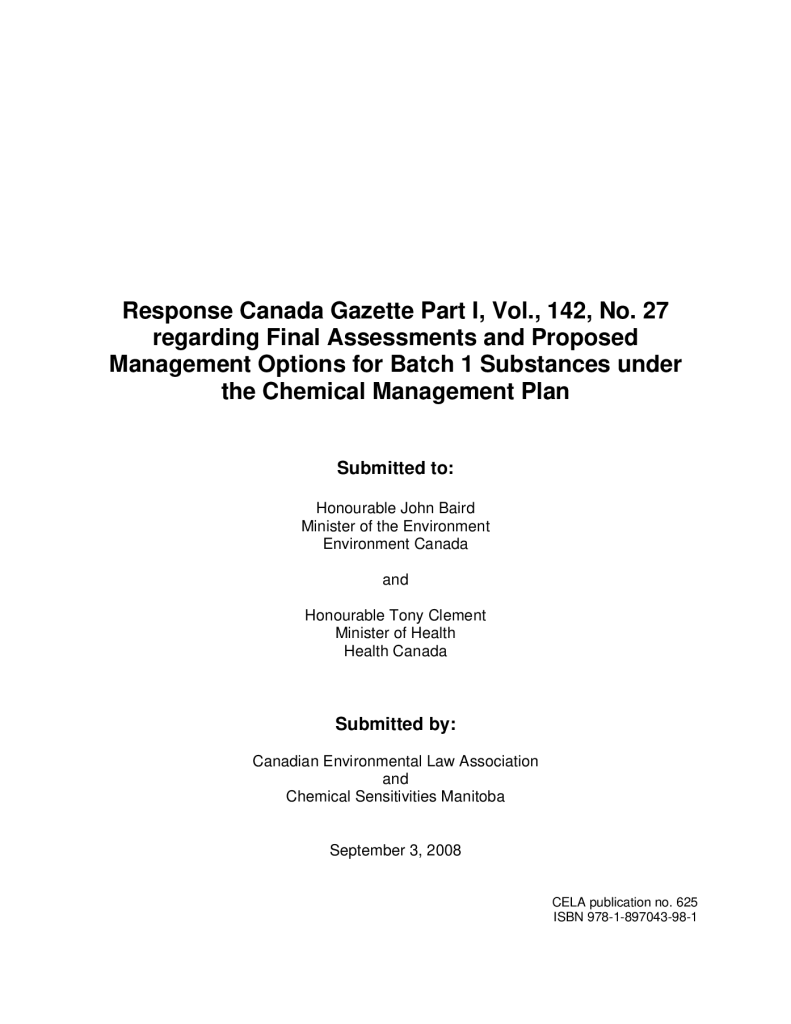 Final Assessments and Proposed Management Options for Batch 1 Substances, Industry Challenge, CMP