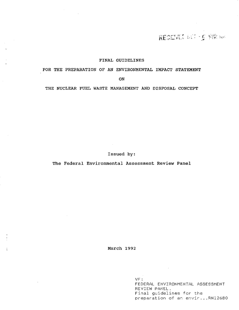 Final guidelines for the preparation of an environmental impact statement on the nuclear fuel waste management and disposal concept