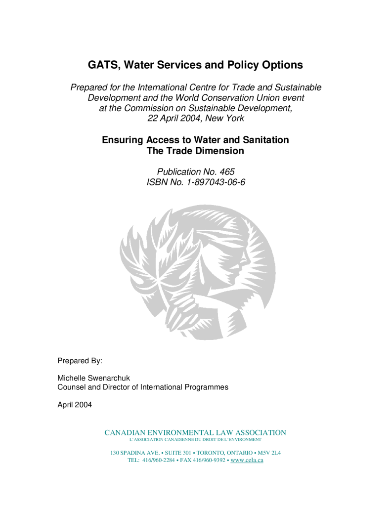 GATS, water services and policy options: ensuring access to water and sanitation; the trade dimension
