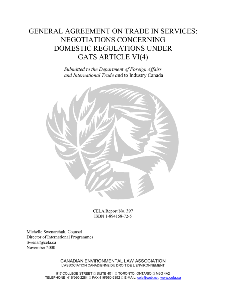 CELA Briefs and Responses to Government Consultations Trade and the environment