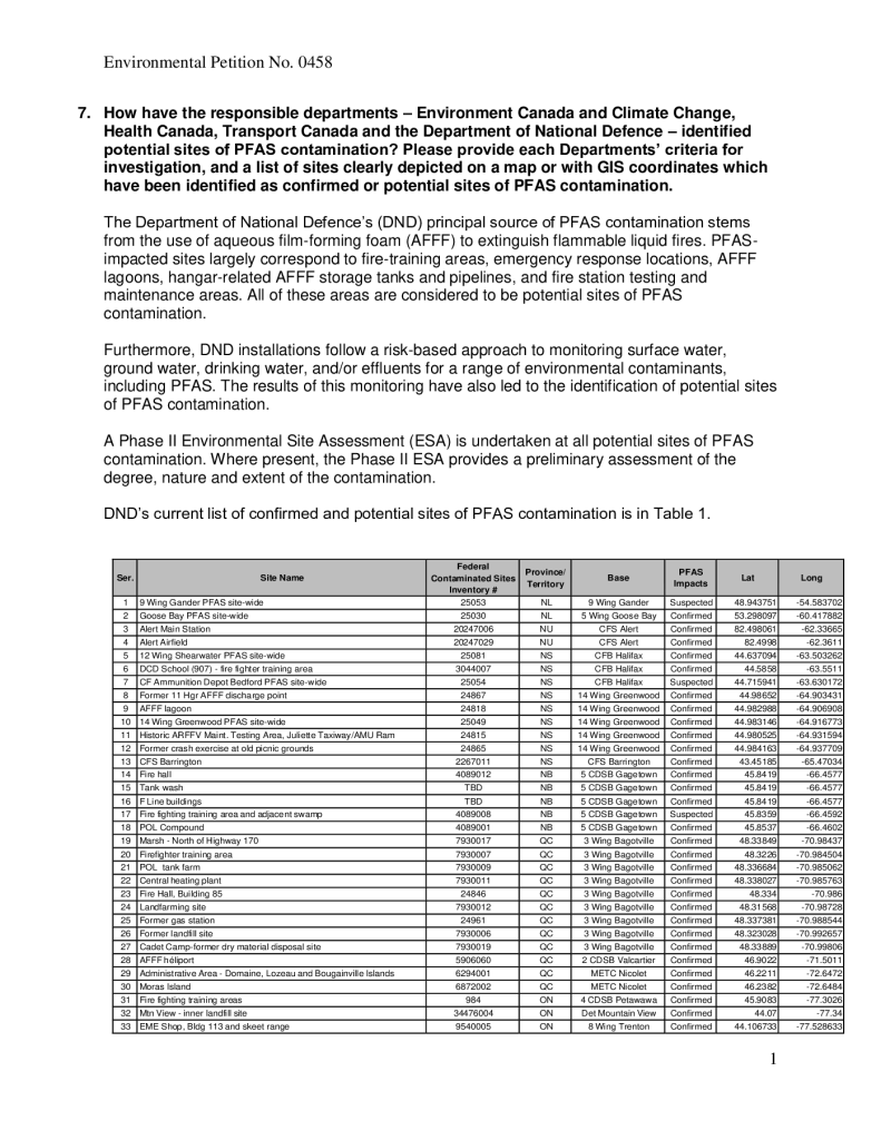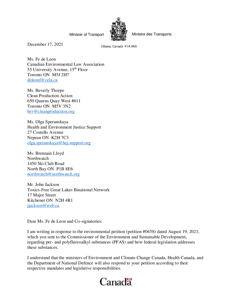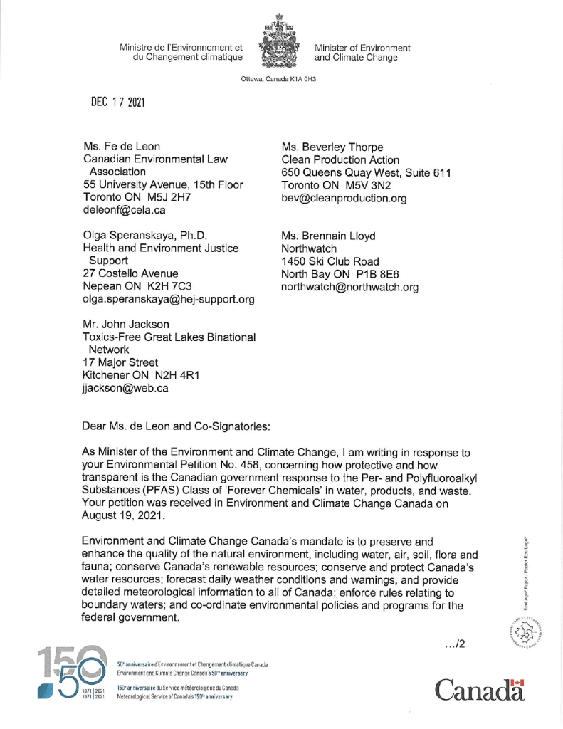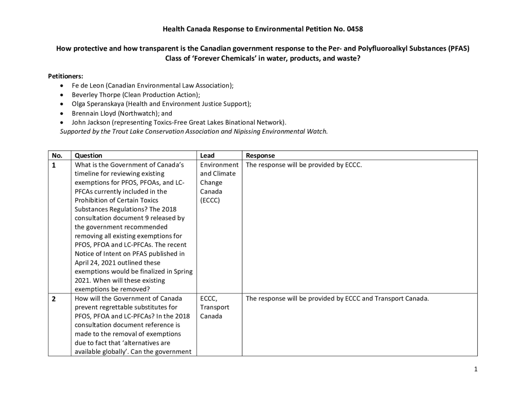 Government Response to Petition: How protective and how transparent is the Canadian government response to the Per- and Polyfluoroalkyl Substances (PFAS) Class of ‘Forever Chemicals’ in water, products, and waste?