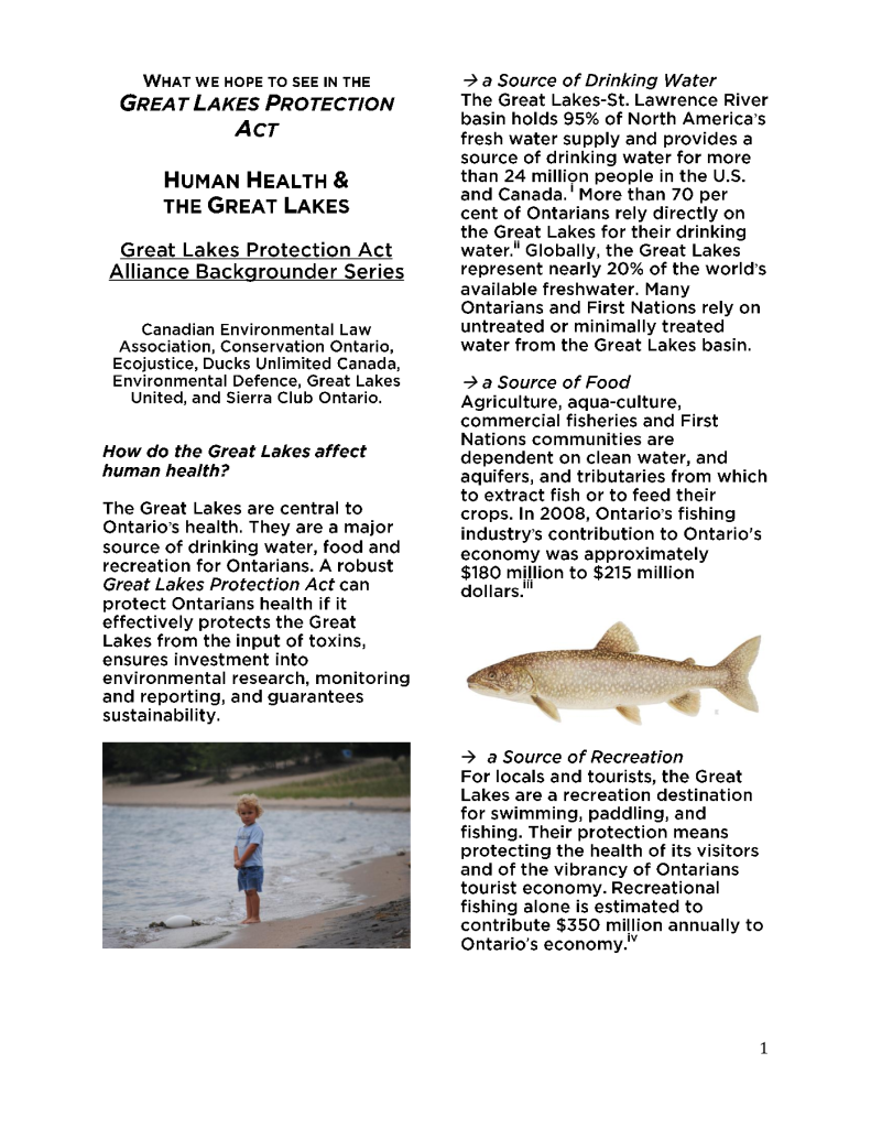 Great Lakes Protection Act Backgrounder- Human Health and the Great Lakes