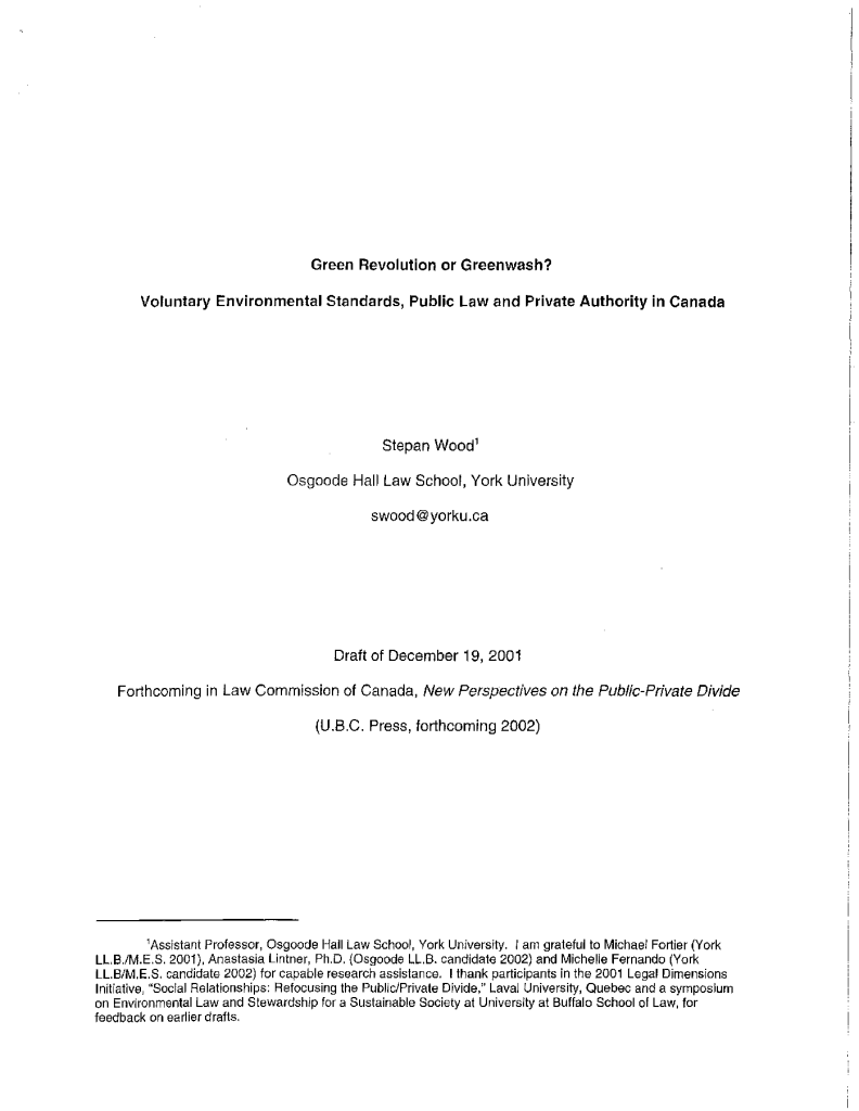 Green revolution or greenwash? voluntary environmental standards, public law and private authority in Canada