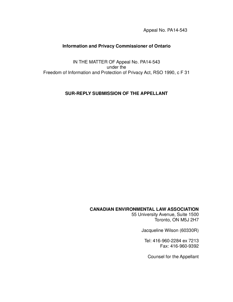 Fonds 1.0 - Canadian Environmental Law Association
