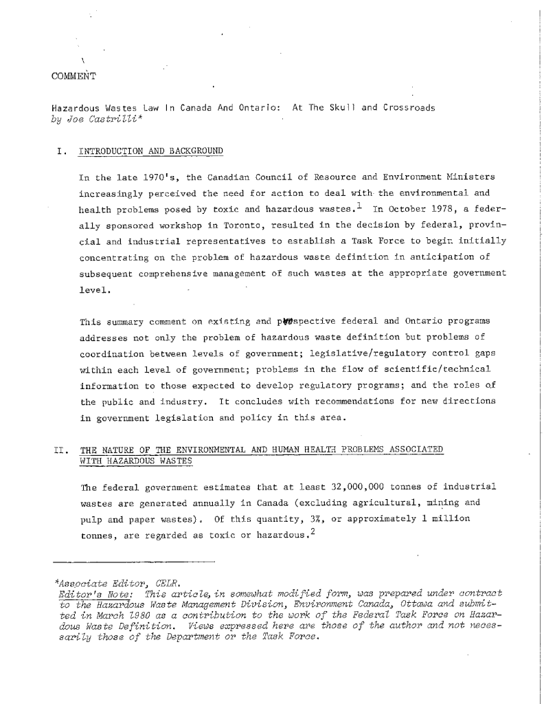 Hazardous wastes law in Canada and Ontario : At the skull and crossroads