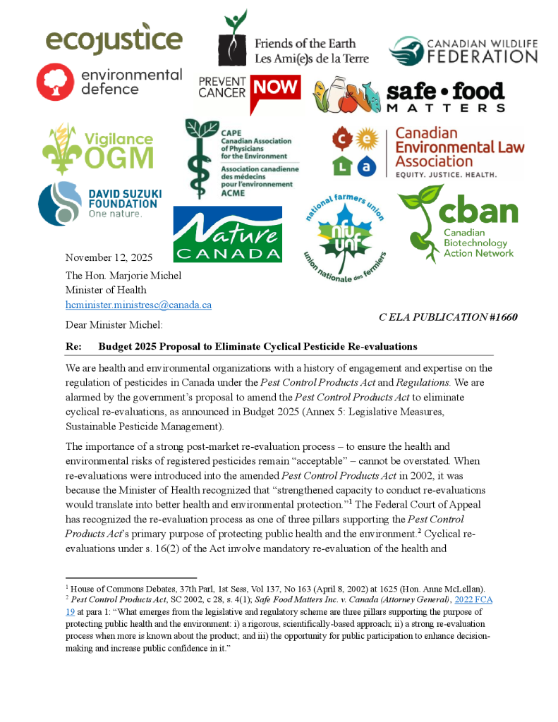 Health and Environmental Groups oppose Proposal to Eliminate Cyclical Pesticide Re-evaluations announced in the Federal Budget 2025
