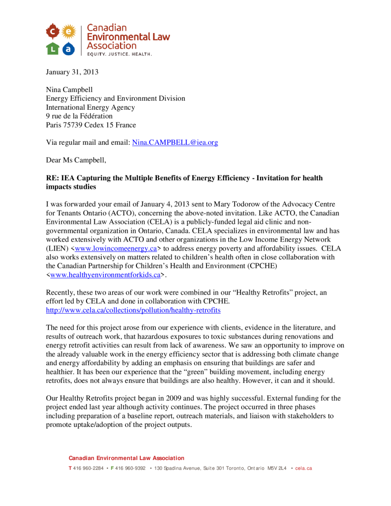 IEA report: “Capturing the Multiple Benefits of Energy Efficiency” – invitation for health impact studies