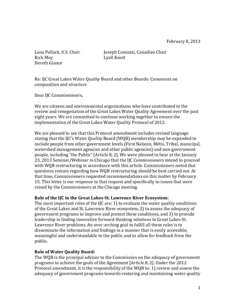 IJC Great Lakes Water Quality Board and other Boards: Comments on composition and structure