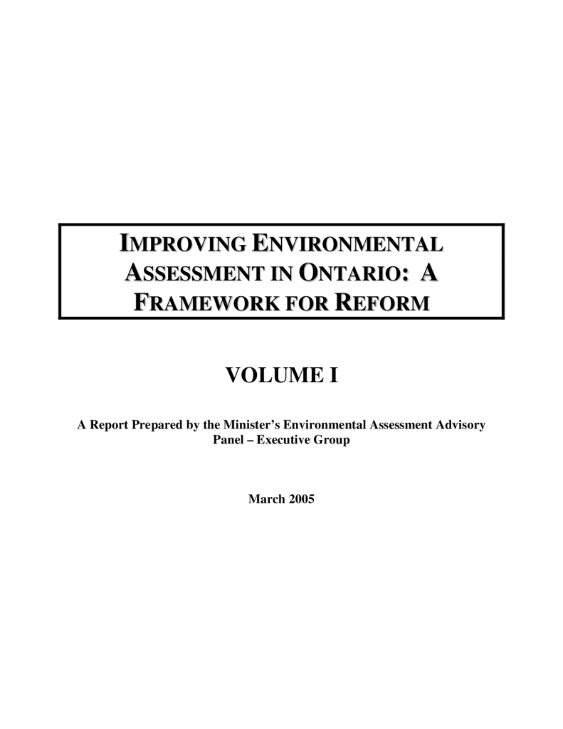Improving Environmental Assessment in Ontario: A Framework for Reform, Volume 1
