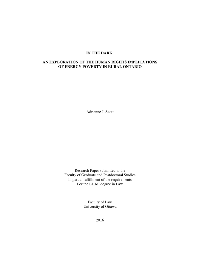 In the Dark – An Exploration of the Human Rights Implications of Energy Poverty in Rural Ontario