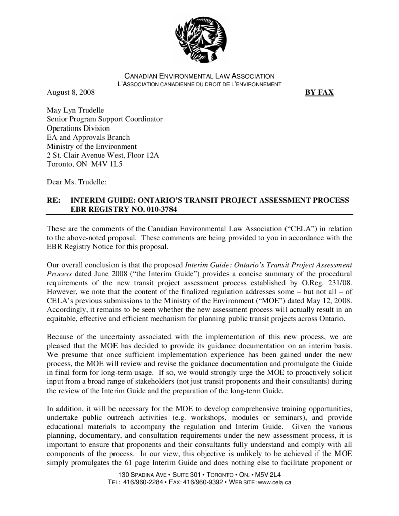 Interim Guide: Ontario’s Transit Project Assessment Process