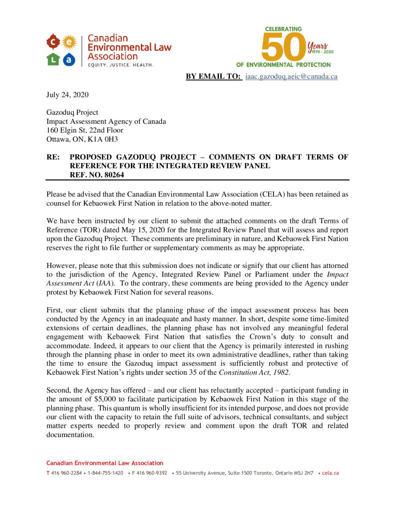 Kebaowek First Nation Comments to Impact Assessment Agency of Canada