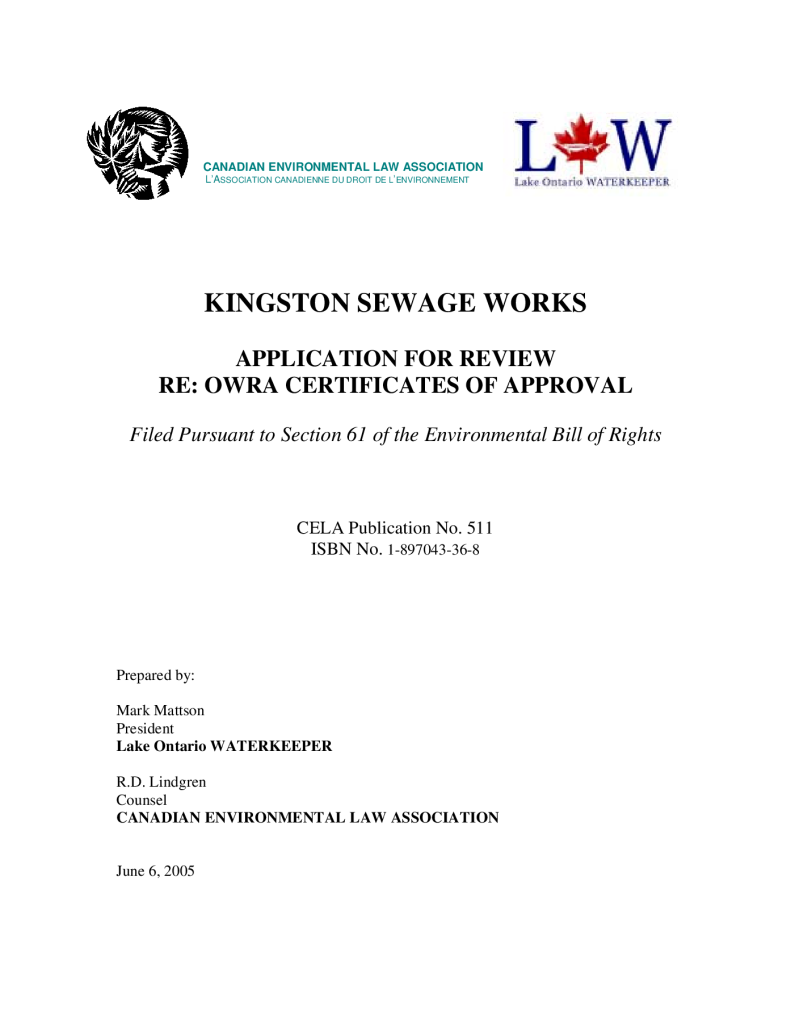 Kingston Sewage Works Application for Review