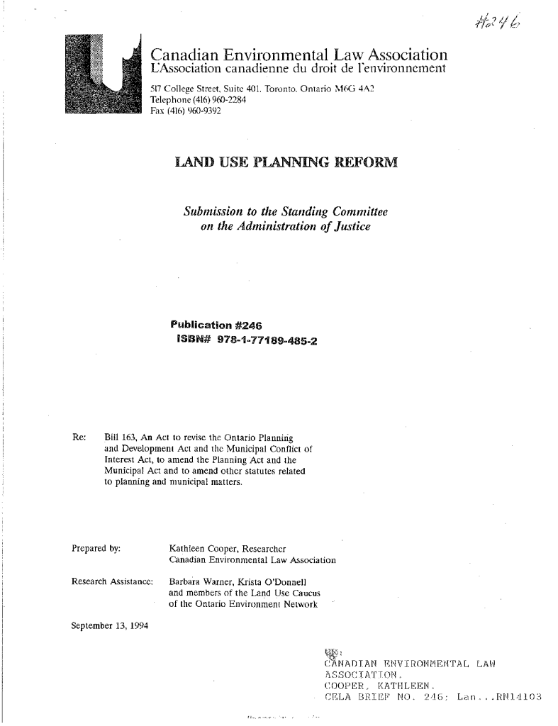 File 1.0 - CELA briefs and responses to government consultations on the land