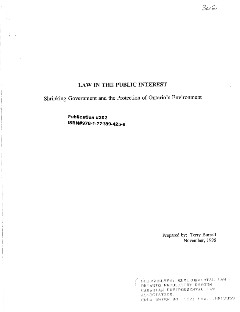 Law in the public interest: shrinking government and the protection of Ontario’s environment