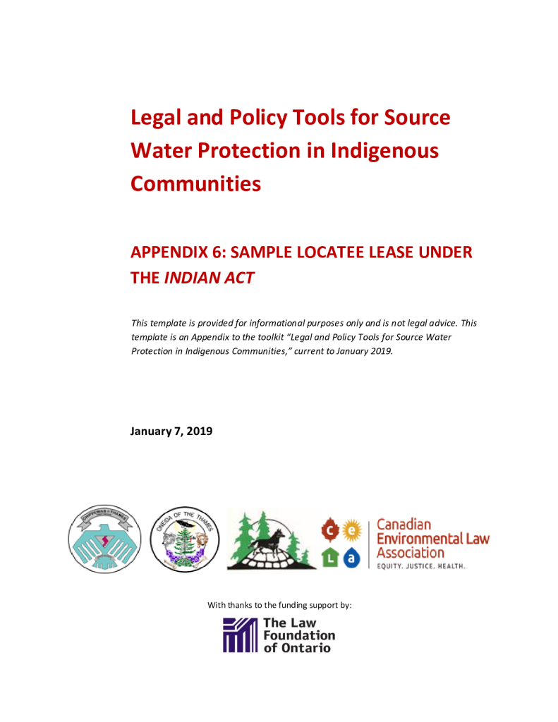 Legal Tool 4: Considering Source Water within Agricultural Leases on First Nation Reserve Lands