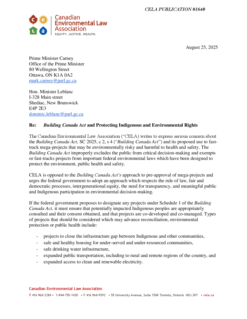 Letter: Building Canada Act and the Need to Protect Indigenous and Environmental Rights