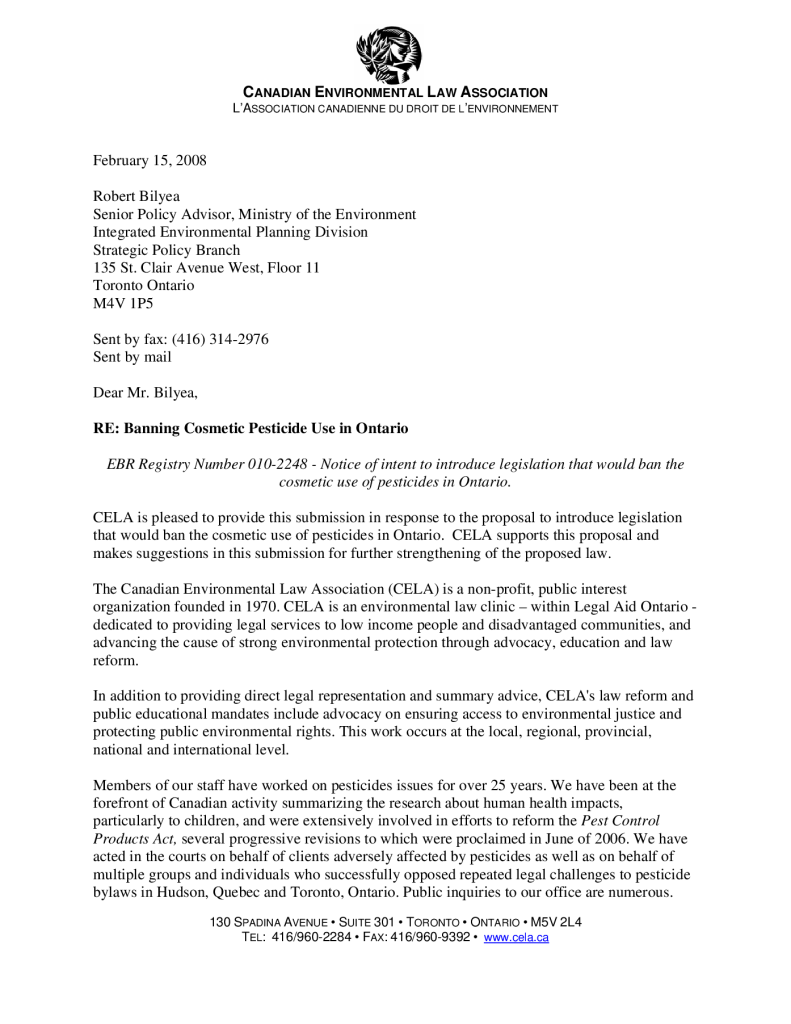 File 1.0 - CELA briefs and responses to government consultations toxics