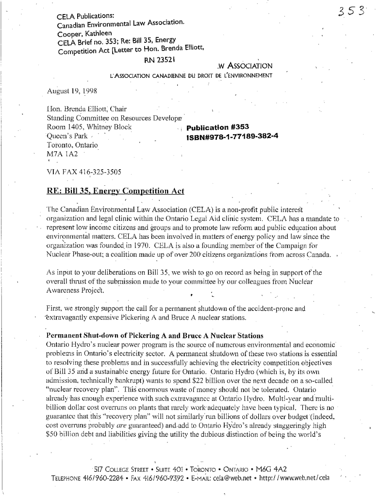 File 1.0 - CELA briefs and responses to government consultations Energy