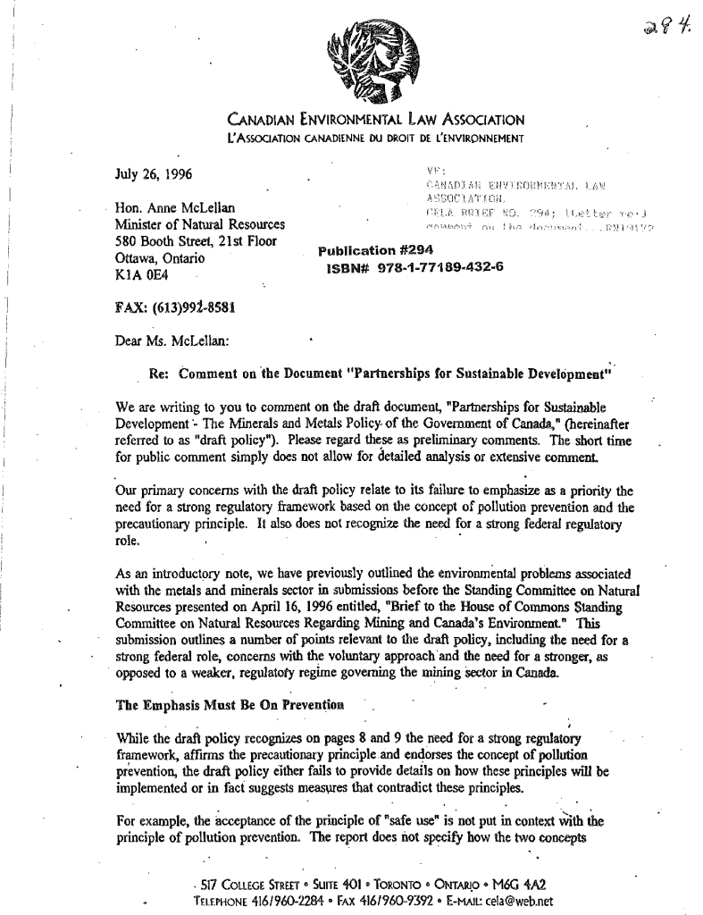 File 1.0 - CELA briefs and responses to government consultations on the land