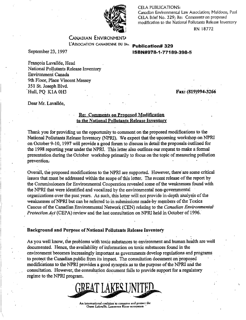 File 1.0 - CELA briefs and responses to government consultations toxics