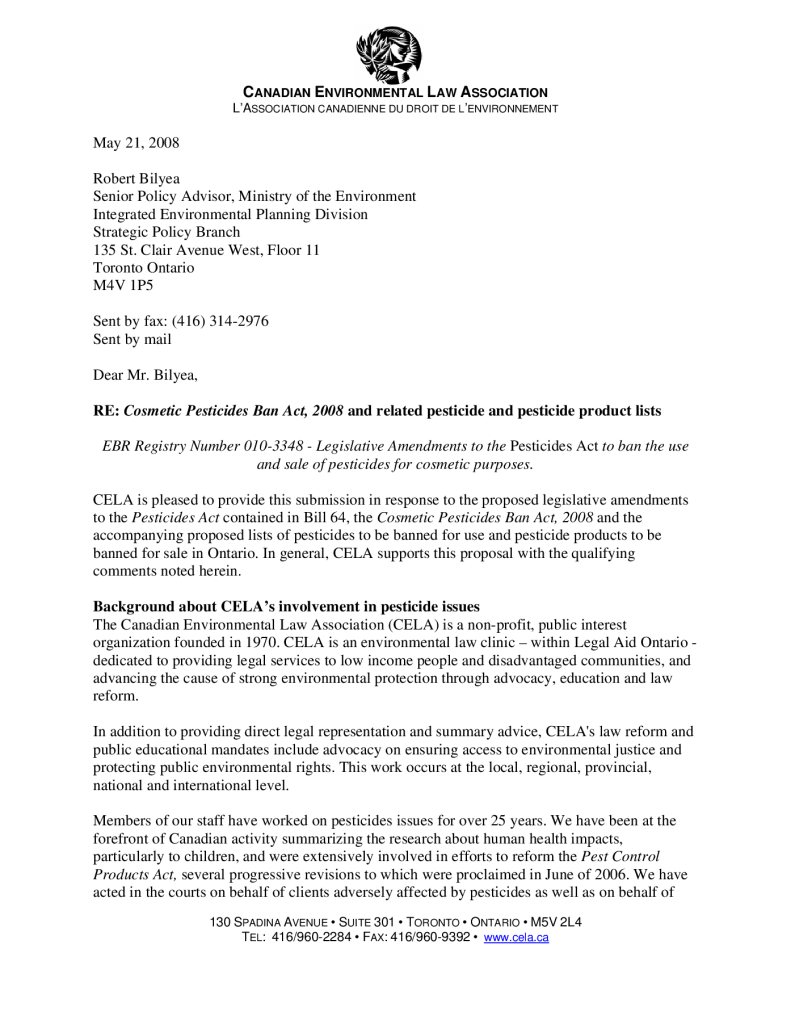 File 1.0 - CELA briefs and responses to government consultations toxics
