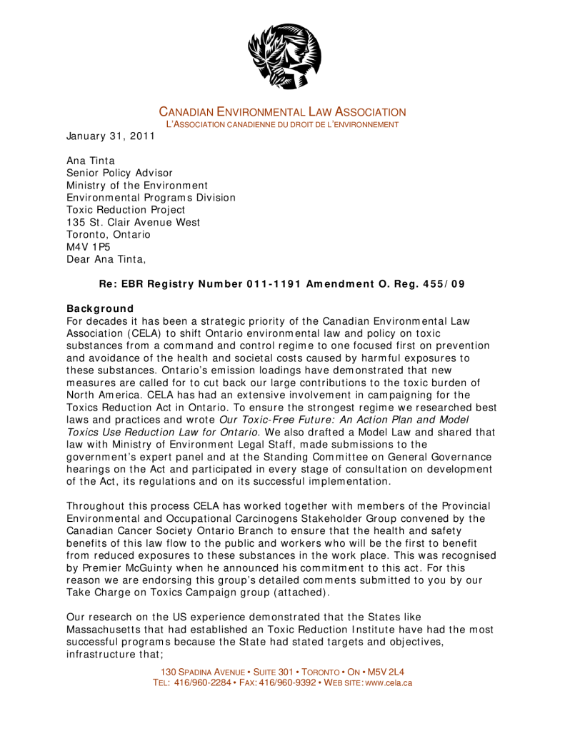 File 1.0 - CELA briefs and responses to government consultations toxics