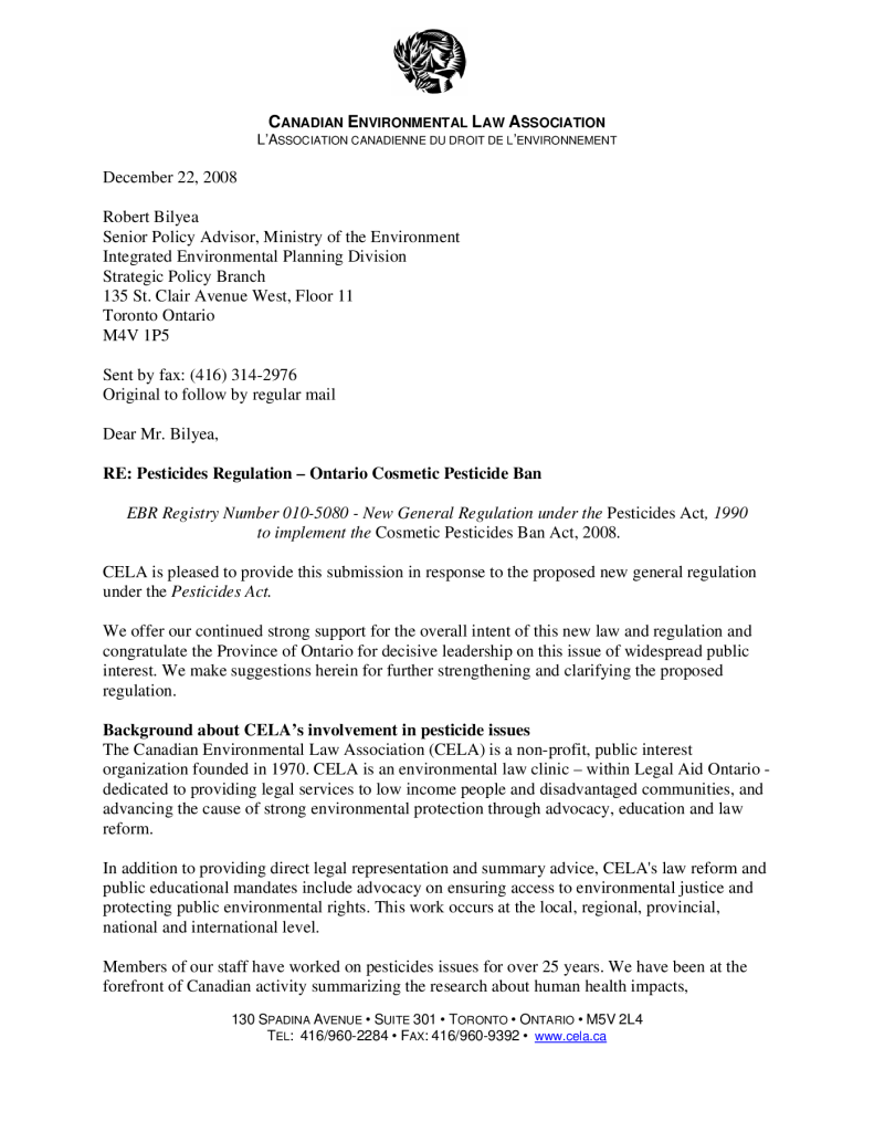 CELA Briefs and Responses to Government Consultations Toxics