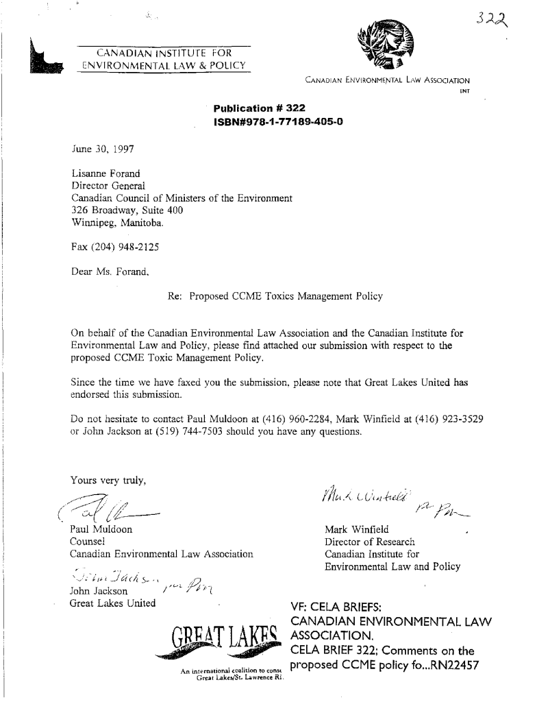 File 1.0 - CELA briefs and responses to government consultations toxics