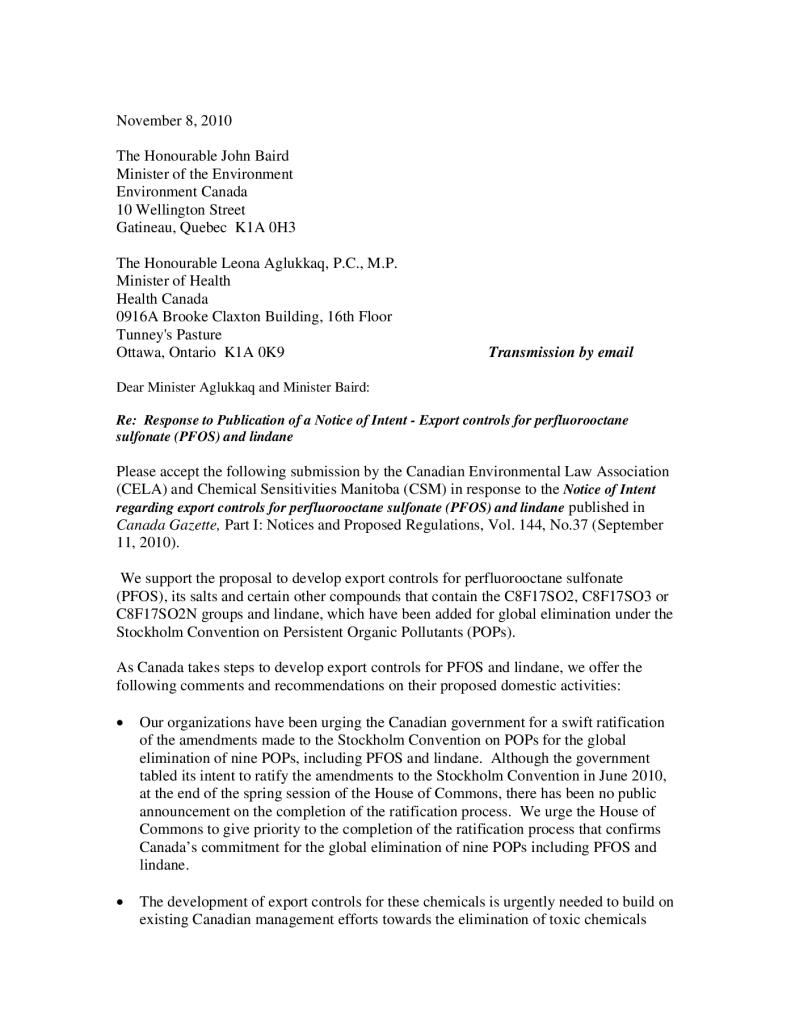 CELA Briefs and Responses to Government Consultations Toxics