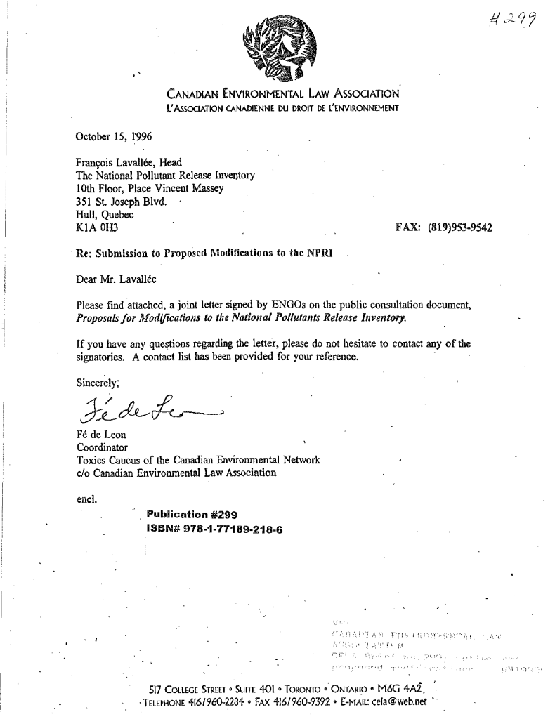 File 1.0 - CELA briefs and responses to government consultations toxics