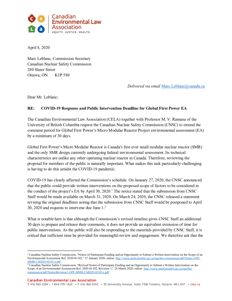 Letter Requesting Extension – COVID and SMR Environmental Assessment