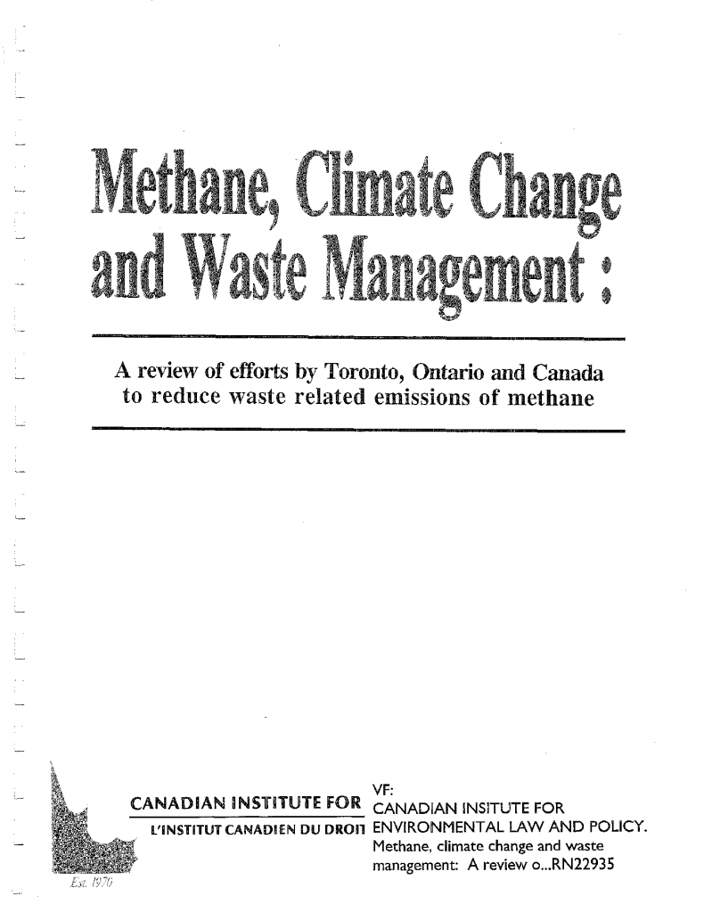 Methane, climate change and waste management: A review of efforts by Toronto, Ontario and Canada to reduce waste related emissions of methane