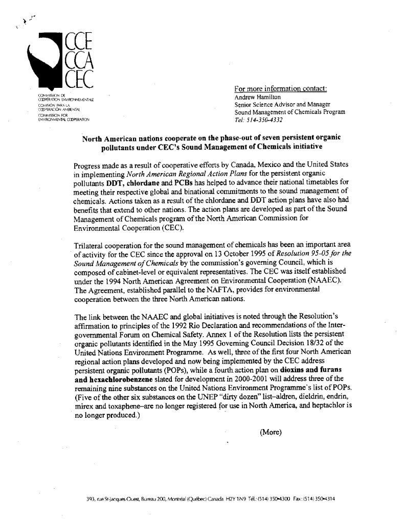 North American nations cooperate on the phase-out of seven persistent organic pollutants under CEC’s sound management of chemical initiative