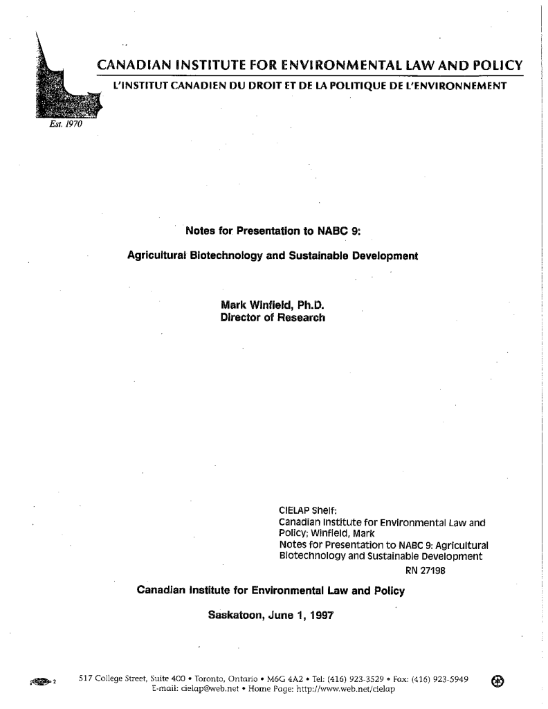 Notes for presentation to NABC 9: agricultural biotechnology and sustainable development
