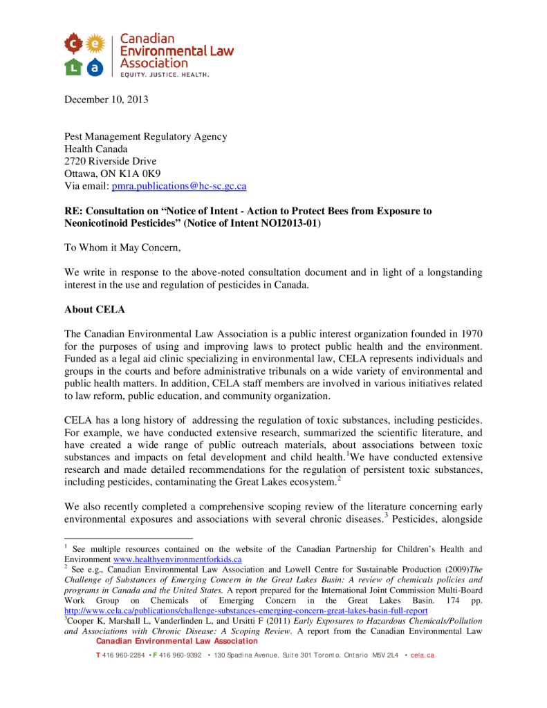Notice of Intent – Action to Protect Bees from Exposure to Neonicotinoid Pesticides