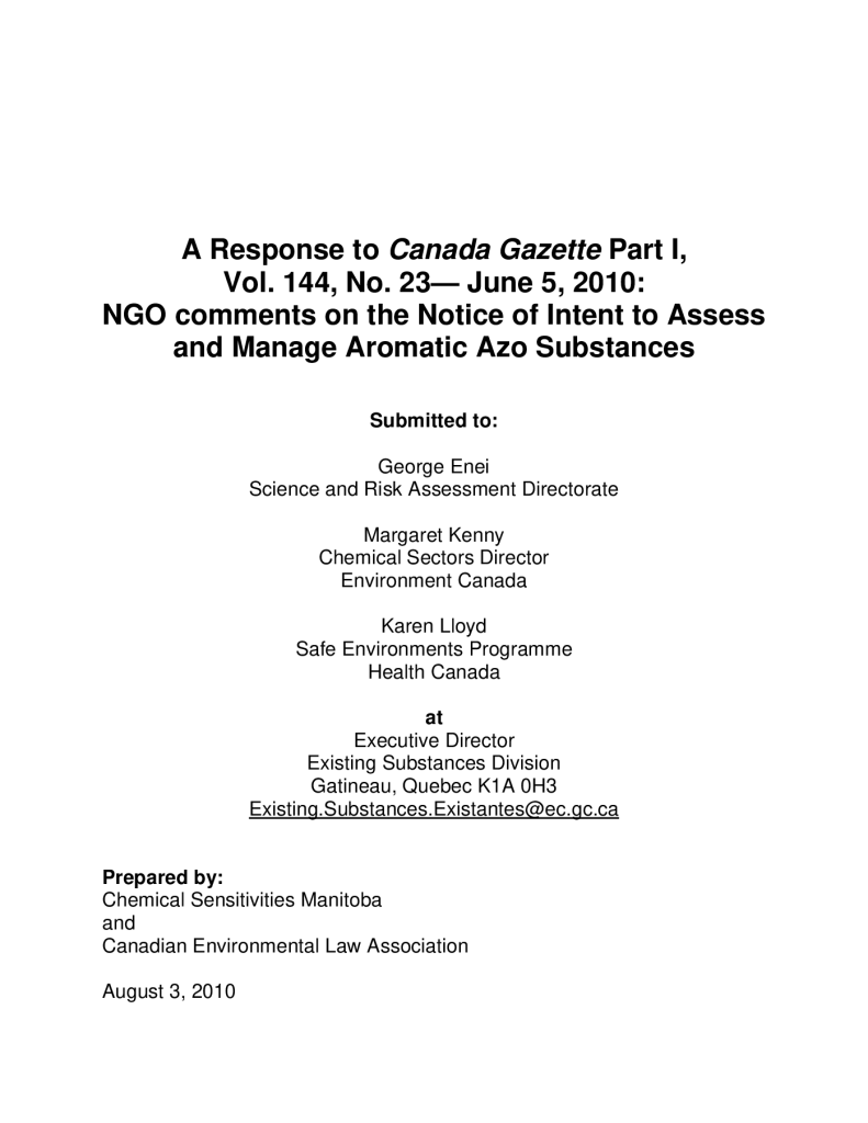 Notice of Intent to Assess and Manage Aromatic Azo Substances