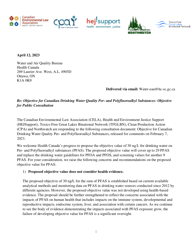 Objective for Canadian Drinking Water Quality Per- and Polyfluoroalkyl Substances