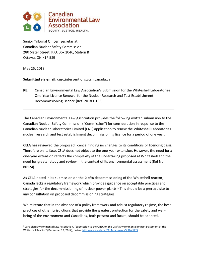 Fonds 1.0 - Canadian Environmental Law Association