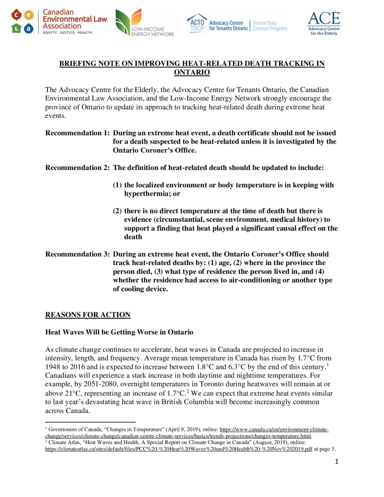 Ontario Coroner’s Office Must Track Heat-Related Death